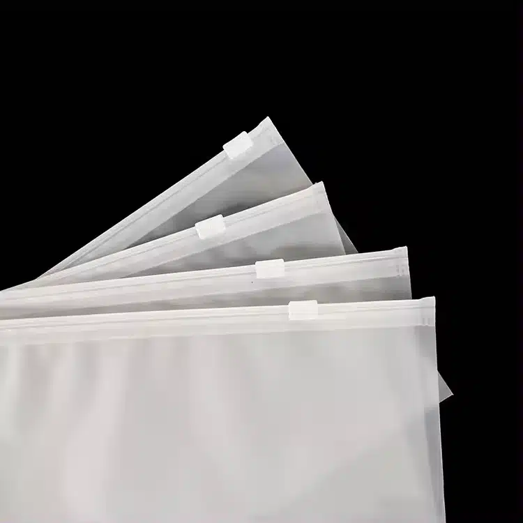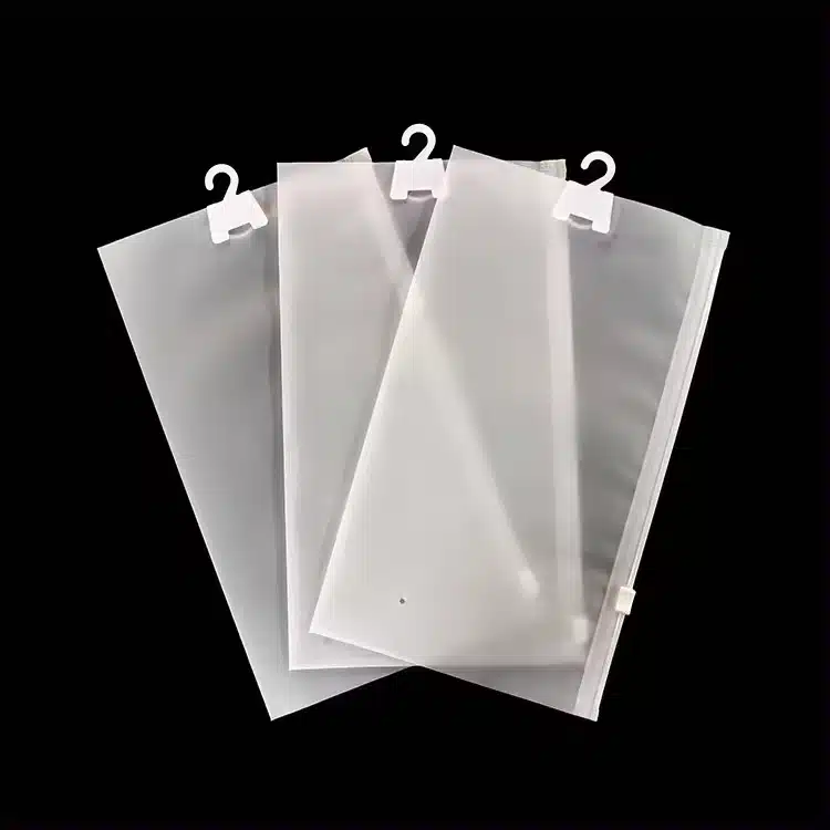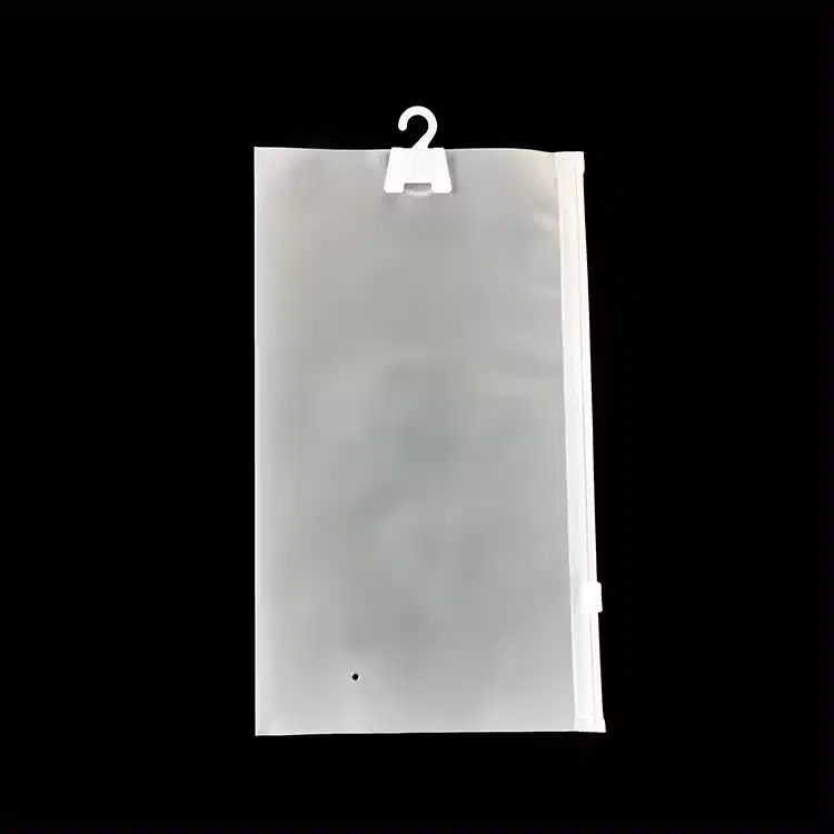 Entdecken Sie den Komfort unserer selbstklebenden PE-Beutel mit integriertem Aufhängehaken, die Ihre Verpackungs- und Lagerungsanforderungen mühelos vereinfachen.