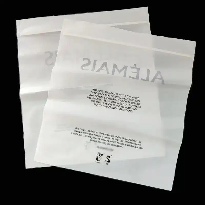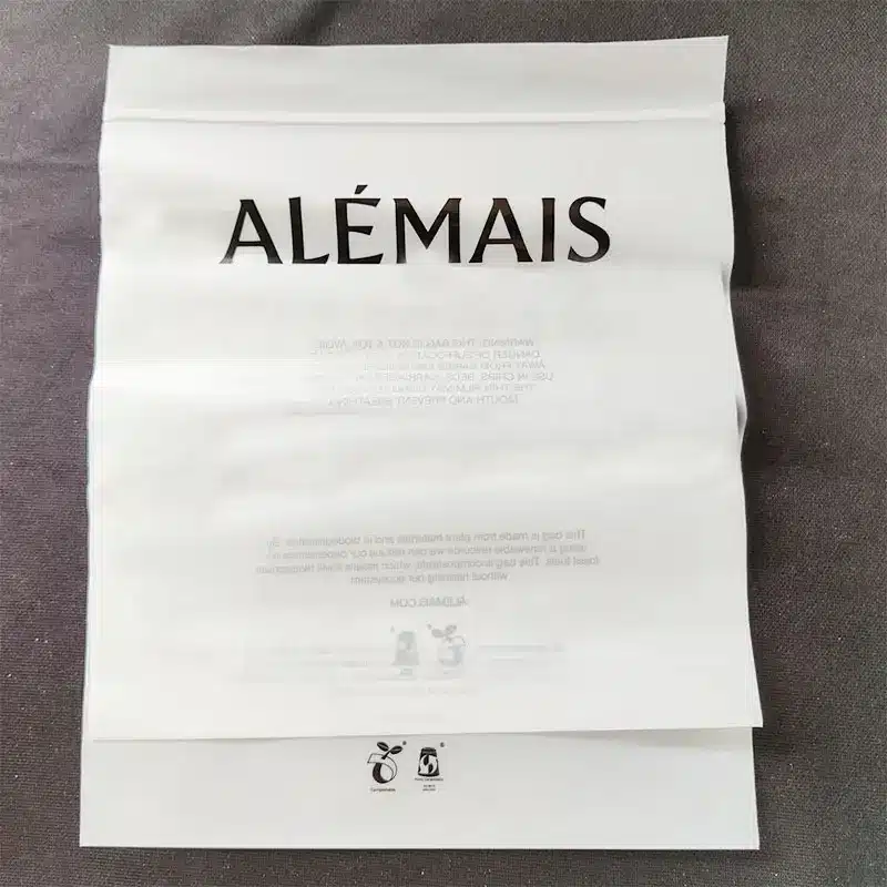 Sacs d'emballage dégradables à fermeture éclair Faites un choix durable avec notre emballage en plastique dégradable transparent mat PBAT+PLA, conçu pour renforcer votre engagement en faveur de la responsabilité environnementale. Fabriqué à partir de PBAT+PLA, ce sac est biodégradable, réduisant considérablement son impact environnemental. Adapté à l'industrie du vêtement, il offre une solution idéale pour emballer en toute sécurité les chaussures et les vêtements. La fermeture autocollante assure une fermeture sécurisée, alliant facilité d'utilisation et préservation de l'intégrité de vos articles emballés.