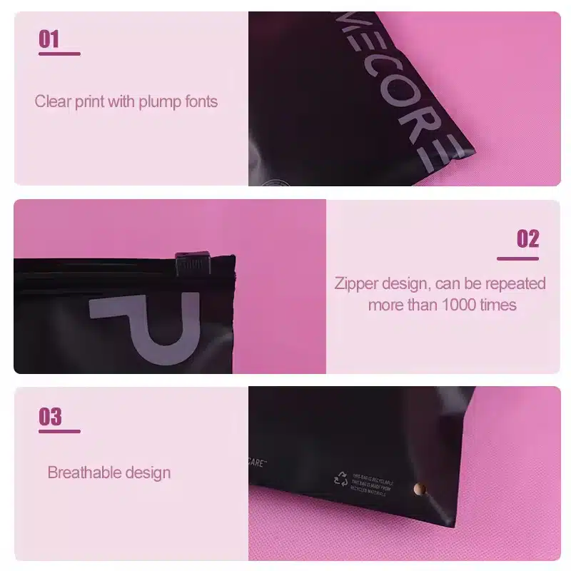 공간 절약형 맞춤형 의류 포장 백 활용: 저희의 검정색 투명 지퍼백은 다재다능하며 의류 보관, 소매 솔루션, 전자 제품, 화장품, 여행 용품 등 다양한 용도로 사용할 수 있습니다. 개인 쇼핑백으로도, 친구, 가족, 사랑하는 사람에게 정성 어린 선물을 하기에 더할 나위 없이 좋습니다.
