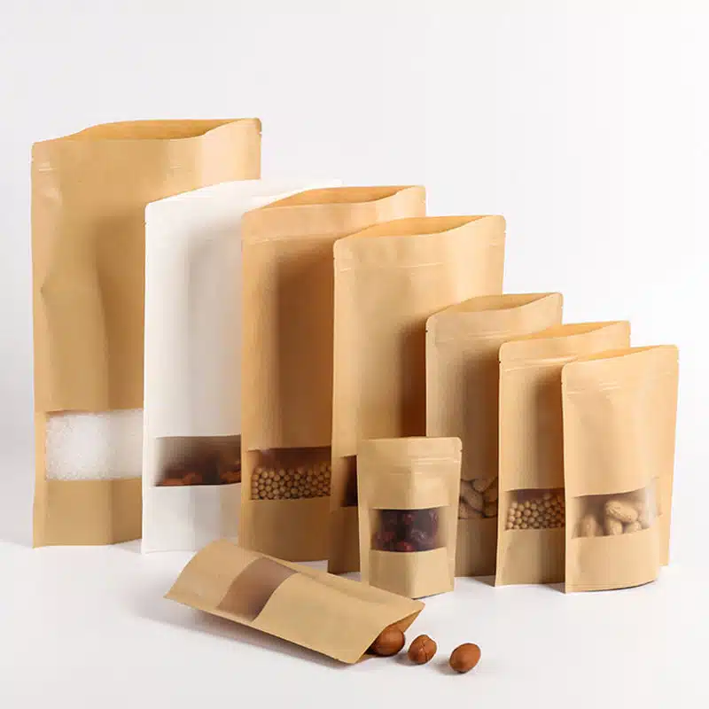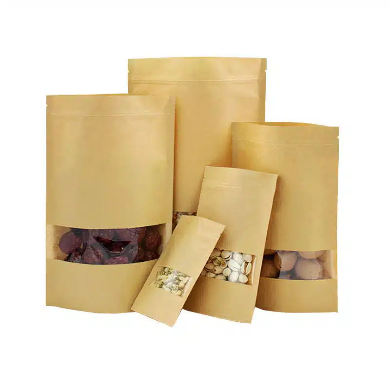 창문이 있는 도매 식품 스탠드업 크래프트지 파우치