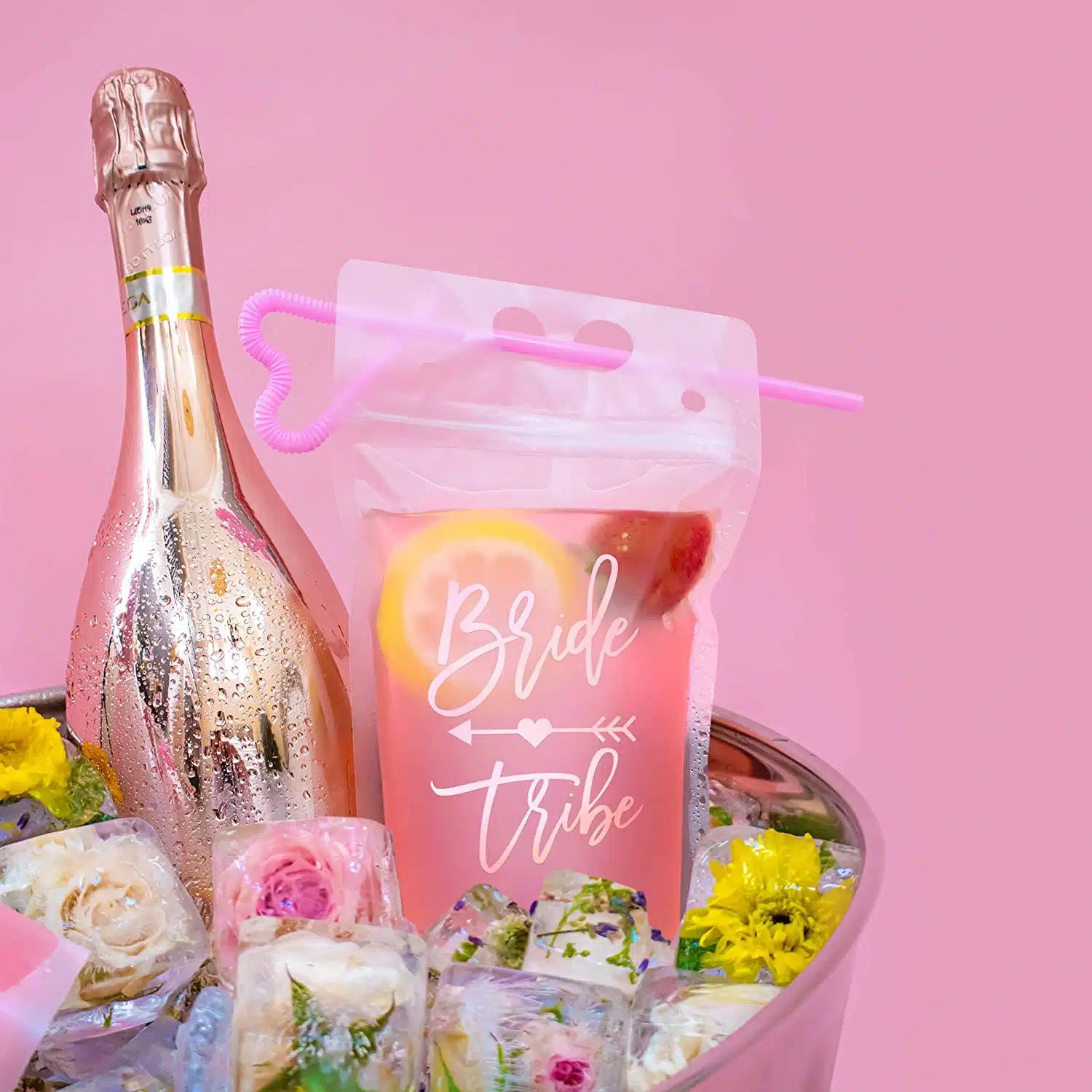 Featuring a combination of clear and matte textures, our reusable juice pouches are designed with pink and blue texts respectively, complemented by matching-colored straws. The clear design allows you to easily see the contents of the pouch, enhancing your overall user experience.