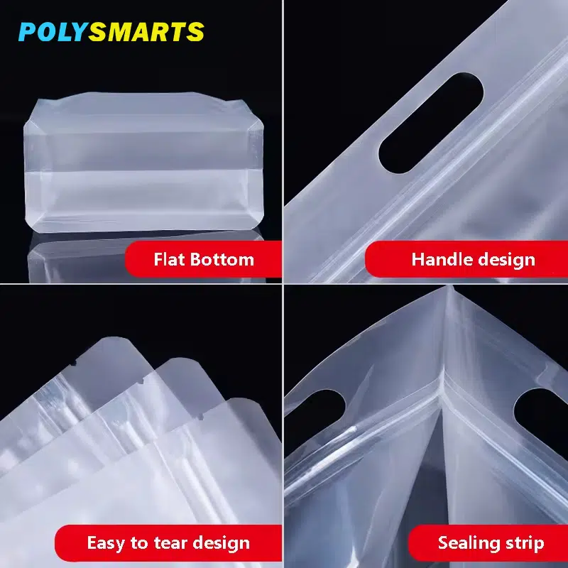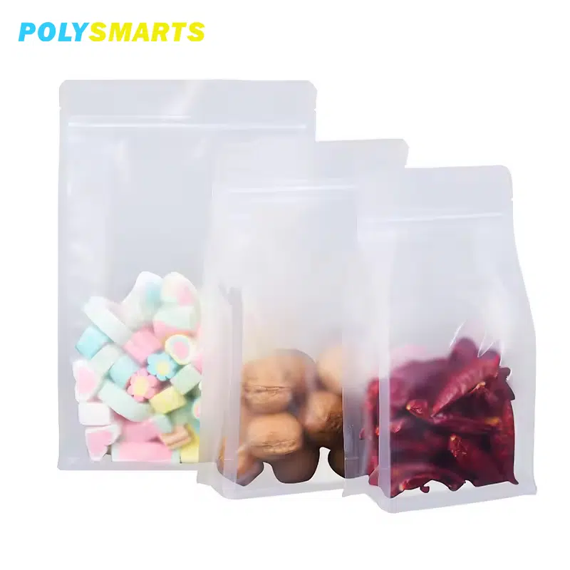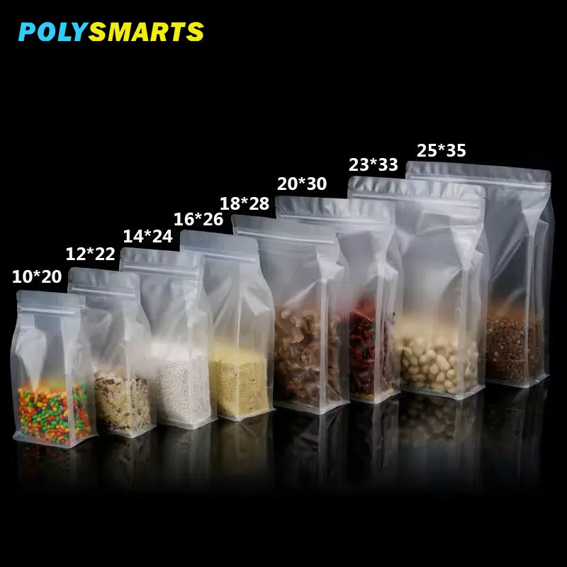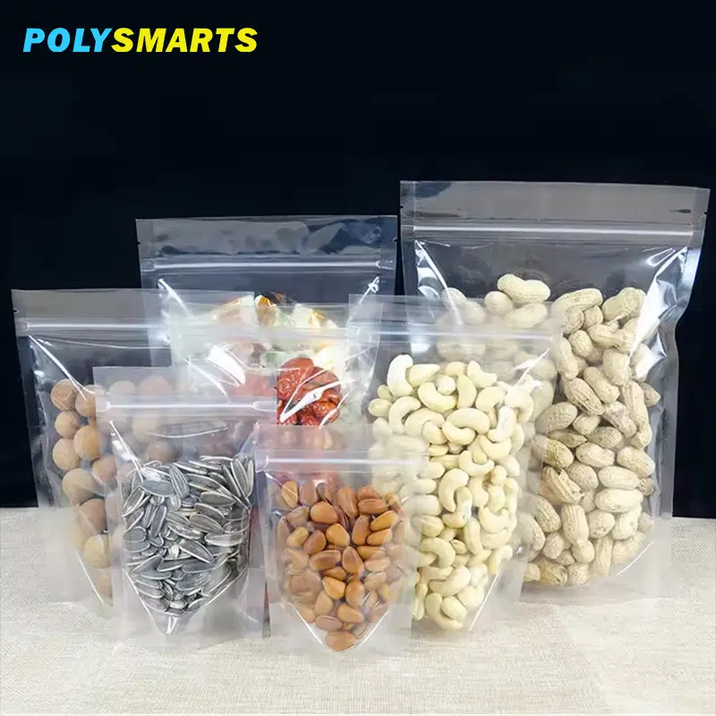 Aprimore a embalagem dos seus alimentos com nossa bolsa de plástico transparente de grau alimentício, com fecho de correr seguro e fundo plano e estável. Projetada para grãos, nozes, café, chá, petiscos para animais de estimação e ração seca, esta bolsa transparente destaca seu produto, mantendo o frescor e o sabor.