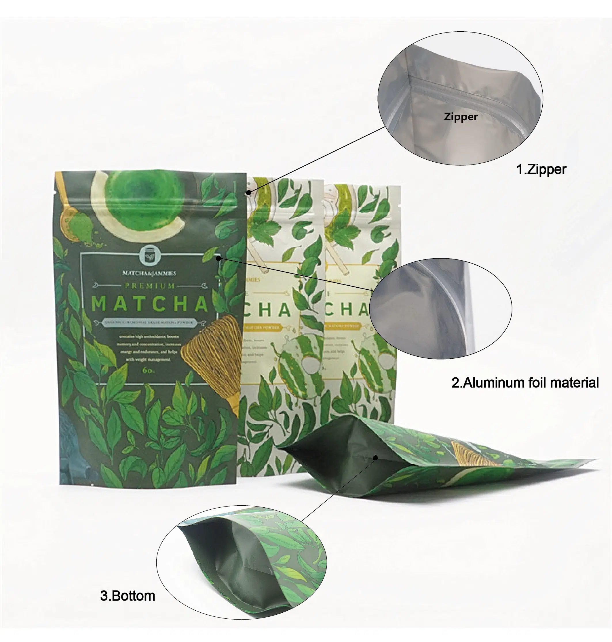 Sacos de embalagem de chá verde impressos personalizados com logotipo